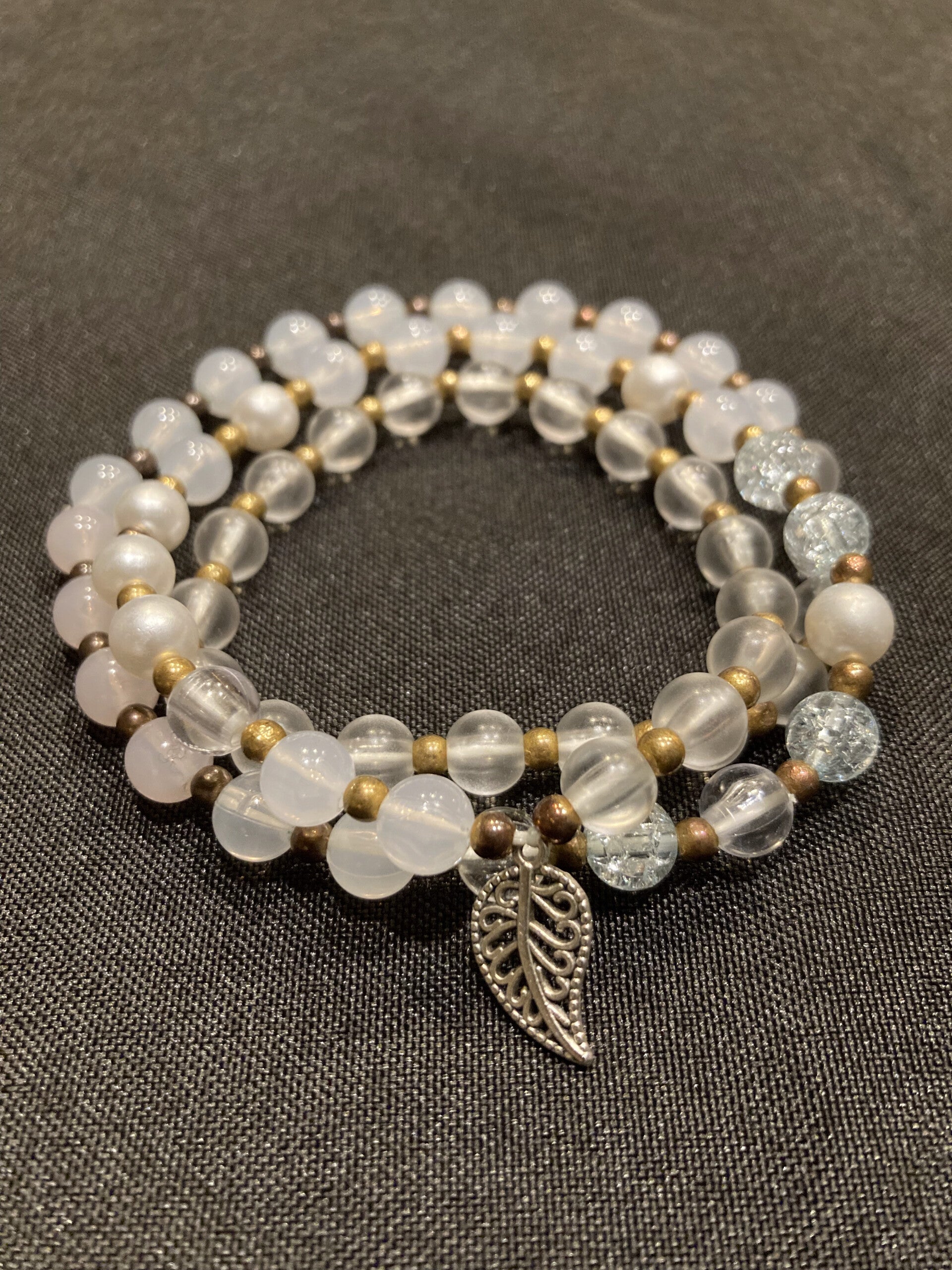 Gold and clear glass multi-wrap bracelet